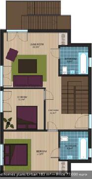 此款木屋設計為兩層樓,木房屋總面積168米²;一樓房子有寬敞的陽臺和三個浴室。房子套件包括屋頂;二樓包括外部和內部的墻壁,木制的雙層玻璃窗,門和樓梯;房頂蓋別墅專用玻纖瓦…