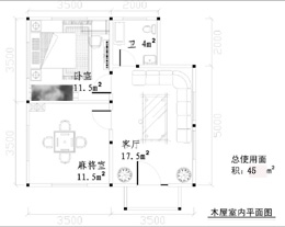 ;麻將室12平米,客廳17平米,采用樟子松防腐木... |